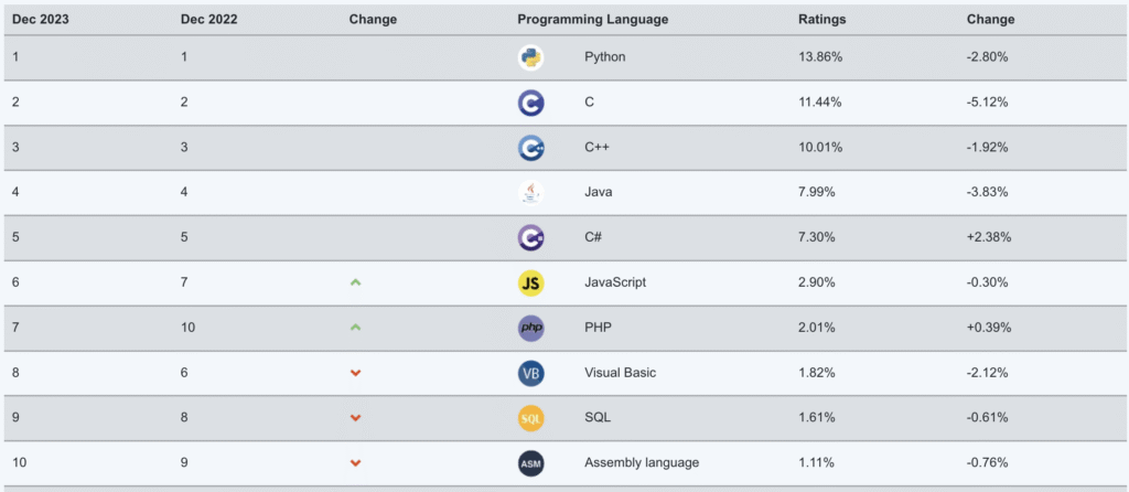 IEEE Spectrum | #1 | 由 IEEE 旗下《Spectrum》杂志发布,兼顾 Google 搜索、Stack Overflow、Twitter、GitHub 等多维度数据 |
